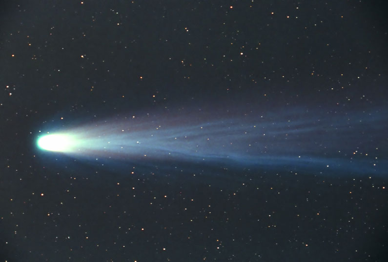 Komet Hyakutake war im Frühjahr 1996 in Erdnähe. Auffällig ist der viele Millionen Kilometer lange Gas- und Staubschweif.