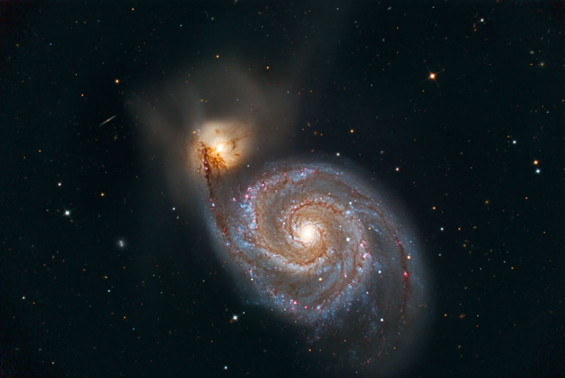 Die Strudel-Galaxie (M 51) im Sternbild der Jagdhunde - einer der schönsten Spiralnebel am nördlichen Sternenhimmel. M 51 ist ein gewaltiges Milchstraßensystem in rund 25 Millionen Lichtjahren Entfernung.