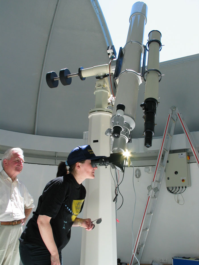 Ein Blick durch den 15 cm-SIMON-Zeiss-Refraktor auf das seltene Ereignis des Venustransits vom 8. Juni 2004